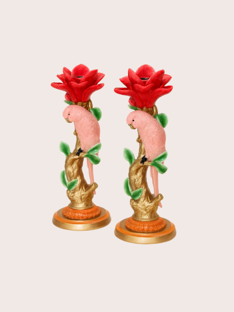 Breng een speels accent aan tafel met de vogel kandelaren. Het verfijnde vogeldetail en de roze tint geven deze kandelaars een unieke, vrolijke uitstraling. Perfect om je tafel nét dat beetje extra karakter te geven.