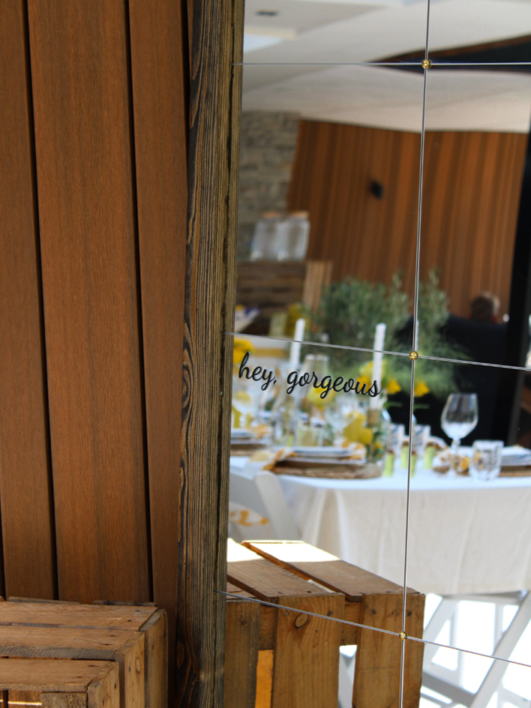 Deze houten spiegel met de tekst “Hey Gorgeous” is een echte eyecatcher. Leuk om gasten te verwelkomen, foto’s te maken of een ruimte net dat beetje extra te geven. Past perfect bij zowel kleurrijke als rustige styling.