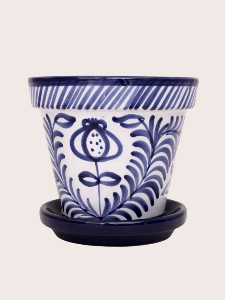 Een tijdloze aardewerk pot in een diepe blauwe tint. Perfect voor (zijden) bloemen, takken of een groene plant. Door de rustige kleur en natuurlijke uitstraling is deze pot makkelijk te combineren binnen verschillende thema’s en settings.