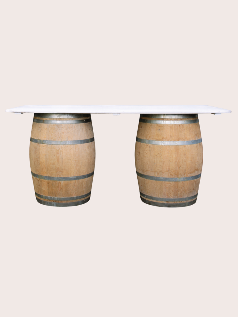 Een bar opgebouwd uit authentieke wijnvaten: stoer, sfeervol en een echte blikvanger. Perfect als drankbar, welkomstbar of Aperol-/champagnebar. Combineert prachtig met glaswerk, bloemen en decoratie voor een warm en uitnodigend geheel.