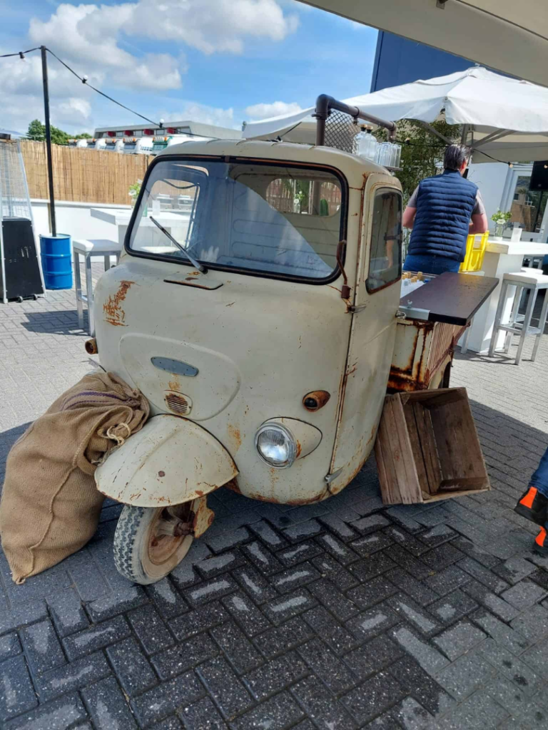 De Piaggio Lambretta heeft door zijn kleur en houten panelen rondom de laadbak net een andere uitstraling dan zijn mede Piaggio’s. Ook de Lambretta heeft de handigheid met houten bar planken. Deze kunnen aan weerszijde worden geplaatst om vervolgens een volledig gesloten werkruimte te creëren. Hierdoor is ook deze Piaggio geschikt als ijsbar, uitgifte bar, smoothiebar, koffiebar of simpelweg een prominent decoratiestuk!