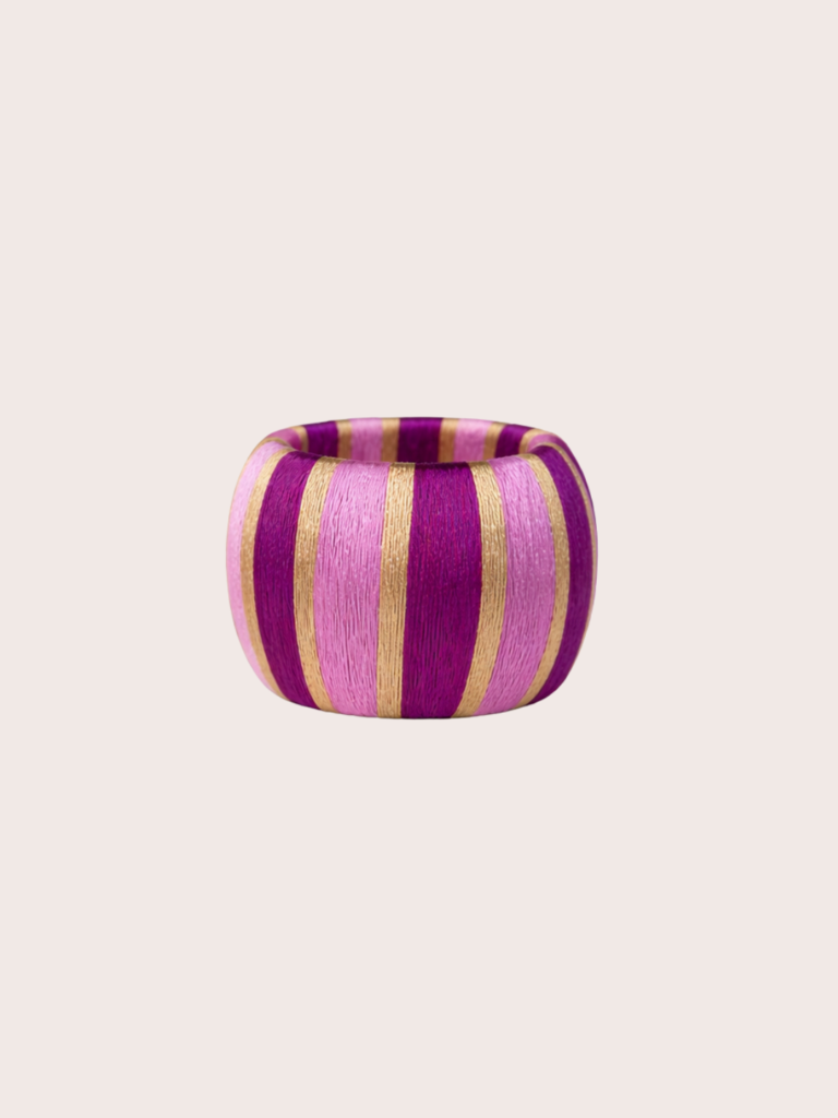 Voeg een elegante kleurtwist toe aan je tafel met deze servetring in paars, lila en goud. De zachte tinten in combinatie met het luxe gouden accent maken hem tot een echte blikvanger. Perfect om je servetten stijlvol te presenteren en je tafeldekking nét dat beetje extra charme te geven.
