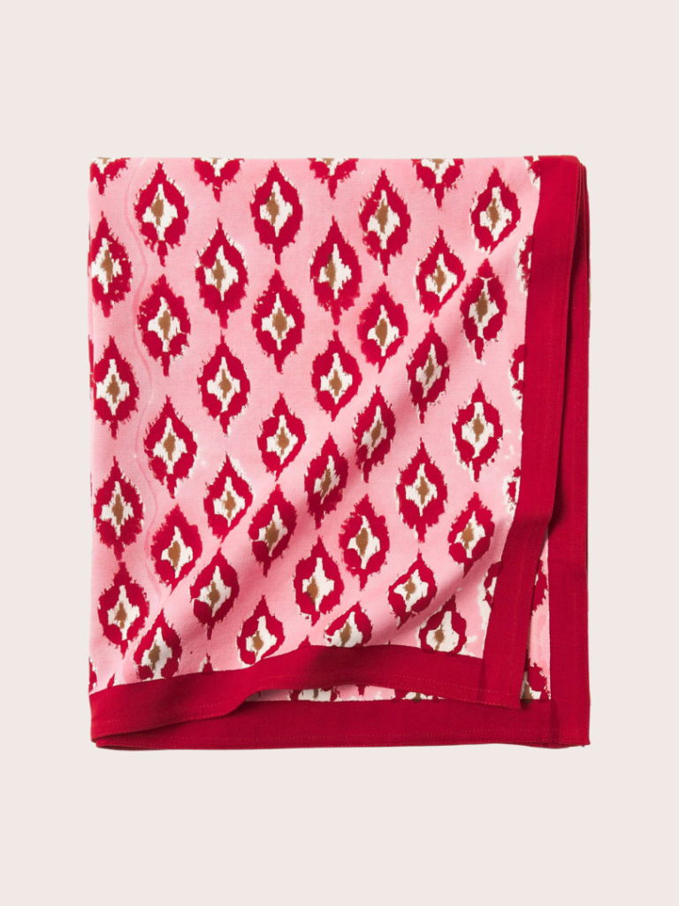 Breng speelse charme aan je tafel met dit handgedrukte tafelkleed! Het vrolijke roze-rode motief zorgt meteen voor kleur en karakter. Of je nu een spontaan etentje organiseert of een feestelijk diner plant, dit unieke kleed brengt instant sfeer. Laat je tafel stralen en geef elk moment rond de eettafel net dat beetje extra magie.