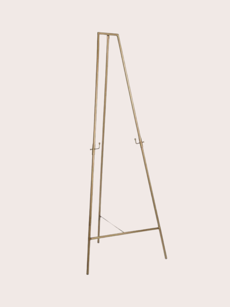 Presenteer je welkomstbord of menu in stijl met deze gouden schildersezel. De elegante gouden afwerking geeft direct een luxe uitstraling en laat jouw boodschap extra opvallen. Perfect voor ontvangsttafels, events of speciale gelegenheden.